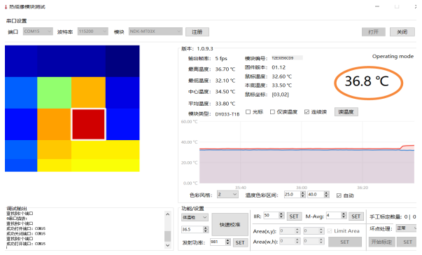 同时支持USB转UART和UART直接输出。UART波特率默认115200,8数据位,1停止位,无校验。其中用户的控制端是主机,测温模组是从机,采用一发一收。