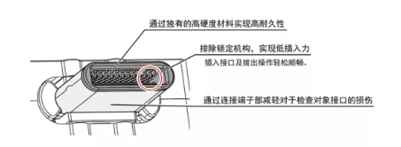2、插头前端结构由树脂构成,有弹性可浮动,灵活性高可以避免损伤检测对象接口。