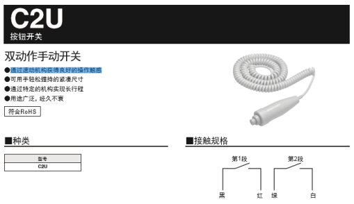 例如欧姆龙的C2U按钮开关,他能通过特定机构实现长行程,通过速动机构获得良好的触感,尺寸也可用手轻松握持,能给客户很好的使用体验。