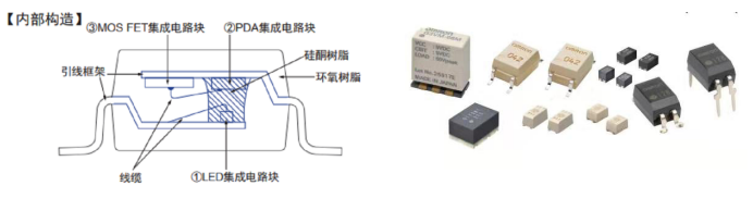 具有超小型,高寿命,低驱动电流,低导通电阻的特点;由3个集成电路块构成:①LED集成电路块(发光二极管);②PDA集成电路块(发光二极管阵列);③MOS FET集成电路块,多种端子类型,可负载电压20V~600V。
