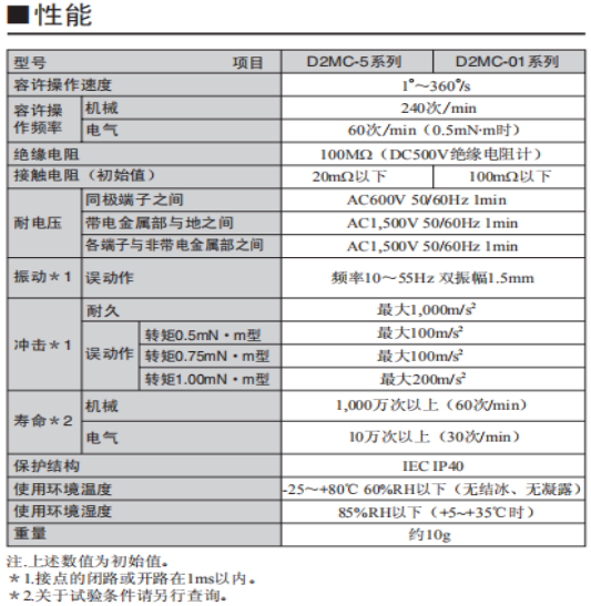 下面我们来看看OMRON欧姆龙这款微动开关高可靠性产品的性能: