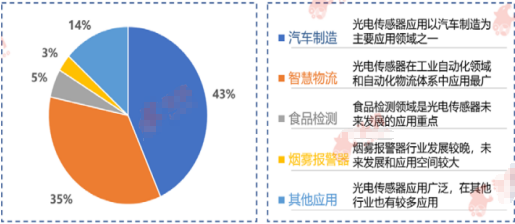 光电传感器行业链下游主要涉及汽车行业、智慧物流行业、食品检测行业、烟雾报警器(如图1)。