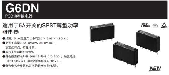 在工业控制中PLC应用非常广泛,而输出端一般选择继电器输出,欧姆龙继电器G6DN-1A-SL则成了首选,G6DN-1A-SL的厚度只有5mm,便于PLC的小型化,而小型化的身材,却有着5A(250VAC和30VDC)的高容量,方便PLC对负载的控制。110mW的低功耗,也走在了节能环保的前沿……