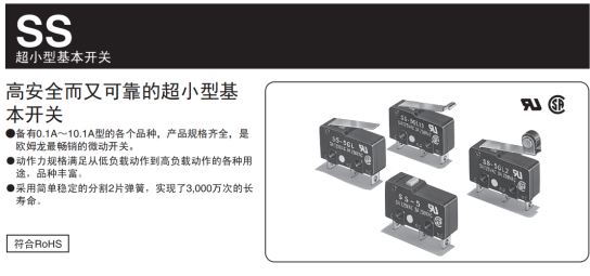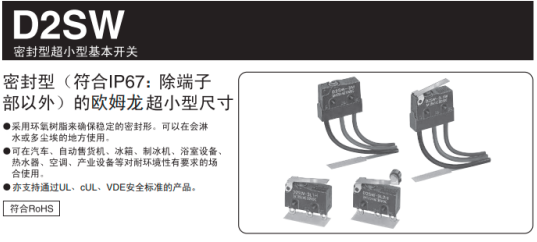 欧姆龙微动开关规格参数齐全,焊接端子,接线片端子,普通型,密封性均有。