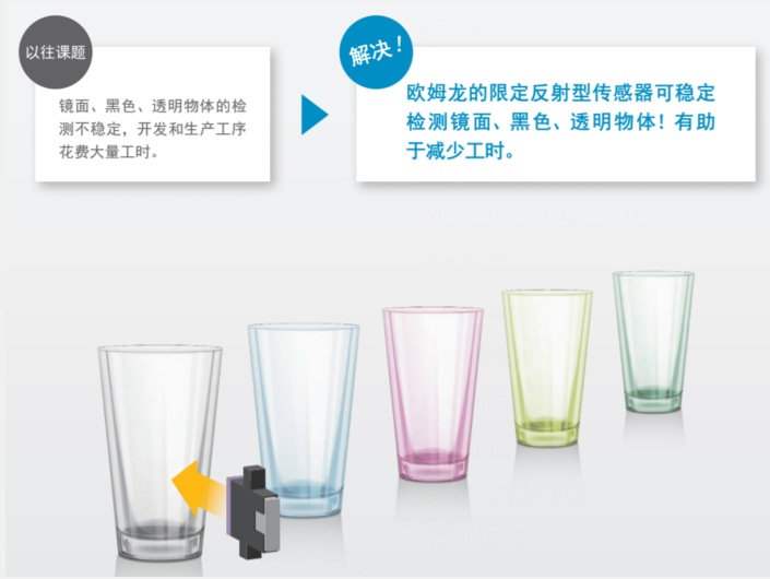 下面我们来介绍下既能检测透明,又能检测有无物体传感器欧姆龙限定反射型传感器 B5W-LB系列的特点