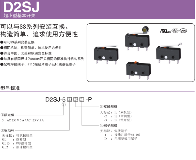 欧姆龙不断创新,与时俱进,再推出新品D2SJ系列,常用在电动推杆行业中;可能有很多人会问,什么是电动推杆呢?欧姆龙推出的D2SJ微动开关具体是起什么作用呢?