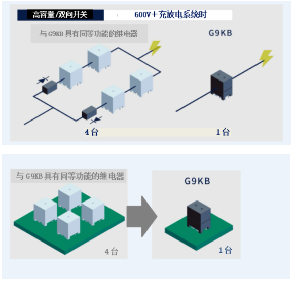 1、支持DC600V、50A的高电压直流继电器,容量达,可实现双向开闭;