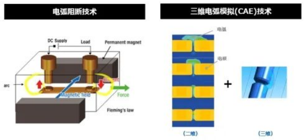 其通过电弧阻断技术和三维电弧模拟新技术,实现了由1台继电器即可完成蓄电系统充电、以及放电时所生直流电流的开、关控制和安全阻断的性能;(注:电弧阻断是通过在接点附近配置永久磁铁的磁场延长直流电流阻断时在继电器接点间产生的放电电弧长度的一项技术;三维电弧模拟技术是通过与产业机构合作的技术,提高设计、技术检验的速度和质量。通过电弧现象的可视化,实现继电器内部电弧阻断过程的效率化及元件主体的小型化的一项技术,三维电弧模拟技术可分析高电压直流电流的安全阻断过程,并确立将分析结果反馈于元件结构设计中的手法。)欧姆龙希望通过这种技术开发的可实现小型且切实、安全地阻断直流电流的高电压直流继电器,为实现客户产品的小型化、轻型化做贡献。