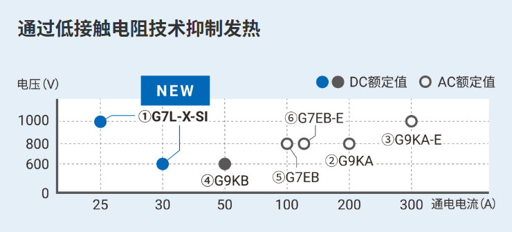 由此,设备的大型化和冷却机构的引入导致成本提高,反而阻碍了普及。欧姆龙通过提供满足大容量化的同时实现“小型化”和“低发热”的产品,有助于清洁能源的普及。满足大容量化且有助于“小型化”“低发热”的功率继电器方案,十分重要,而欧姆龙在此功课上也是重点注入研发,做行业内有自已特长的继电器供大家选品。