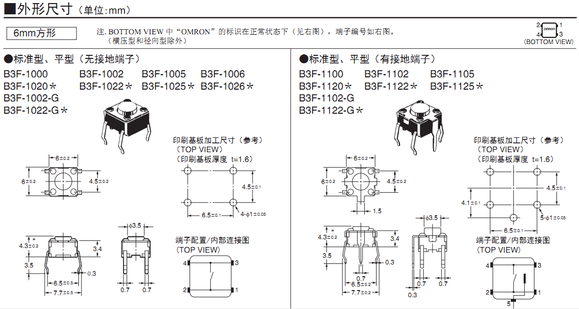 欧姆龙轻触开关,B3F-1000,欧姆龙轻触开关B3F