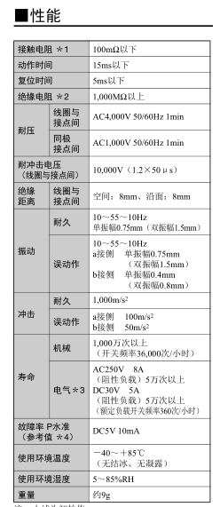 绝缘距离8mm、线圈-接点间耐冲击电压高达10kV。