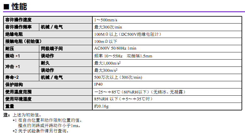 高负荷型也拥有很长的使用寿命。(OF=1.2N、寿命500万次)