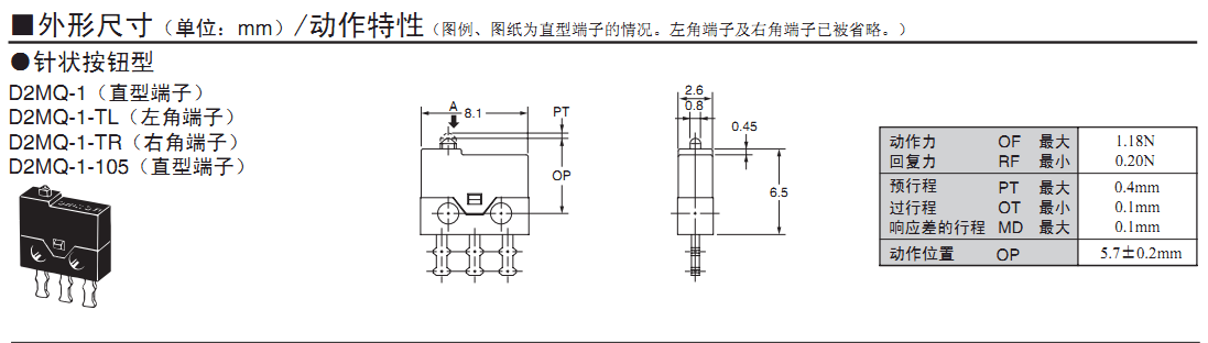 欧姆龙微动开关,D2MQ-1,欧姆龙微动开关D2MQ