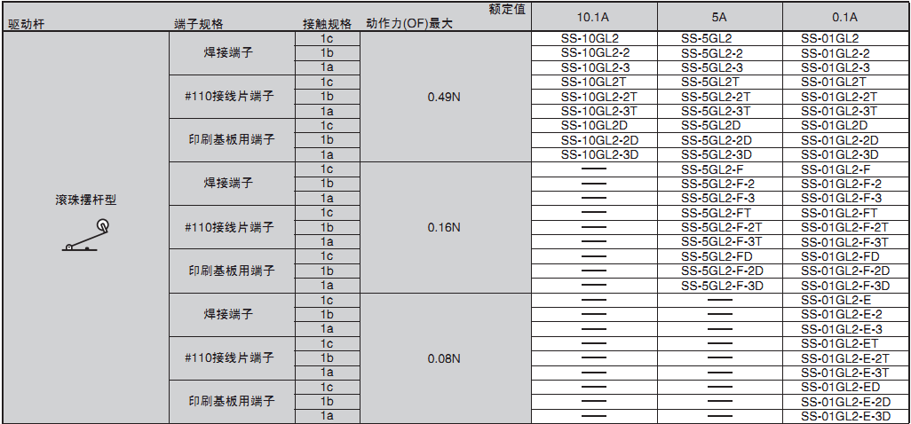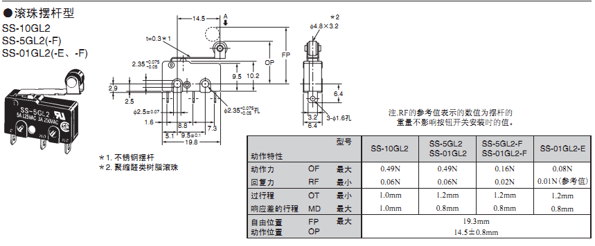 欧姆龙微动开关,SS-01GL2-E,欧姆龙微动开关SS