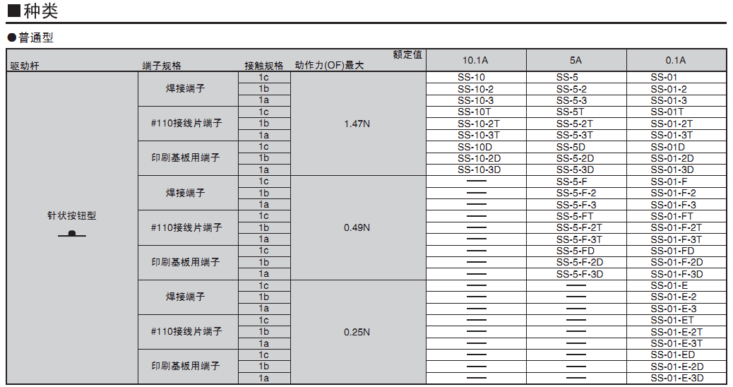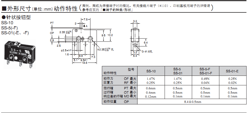 欧姆龙微动开关,SS-5-F,欧姆龙微动开关SS