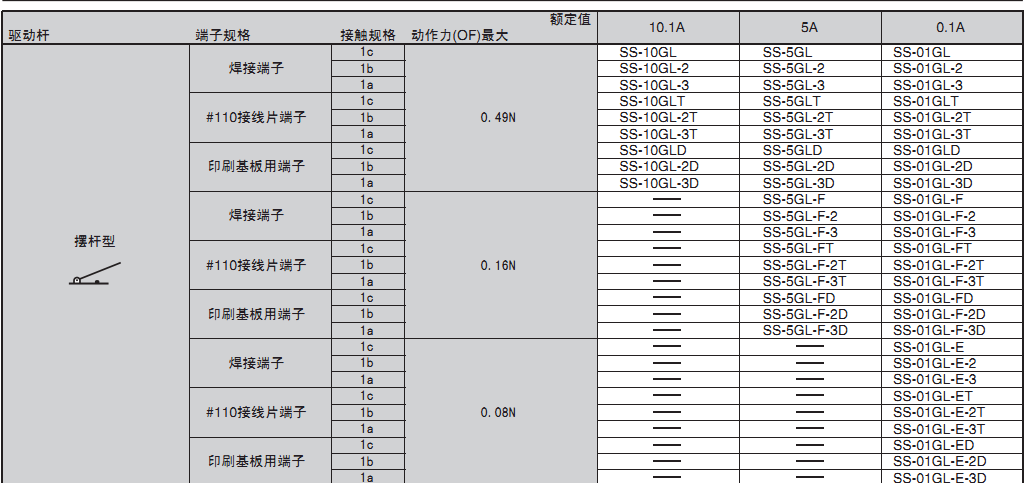备有0.1A~10.1A型的各个品种,产品规格齐全,是欧姆龙畅销的微动开关。