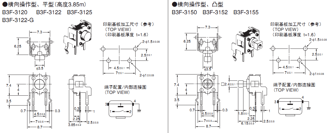 6mm方形、12mm方形具有横向操作、高负载、镀金型等全系列产品