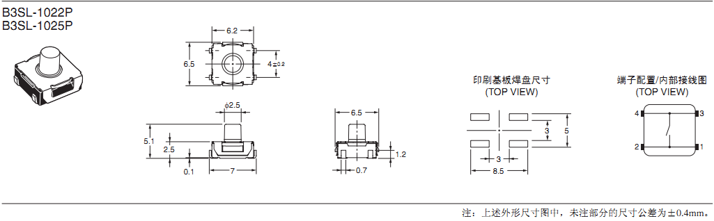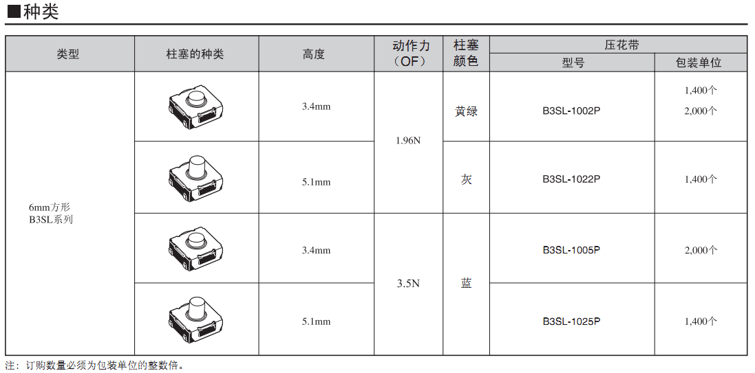 欧姆龙轻触开关, B3SL-1022P,欧姆龙轻触开关B3SL