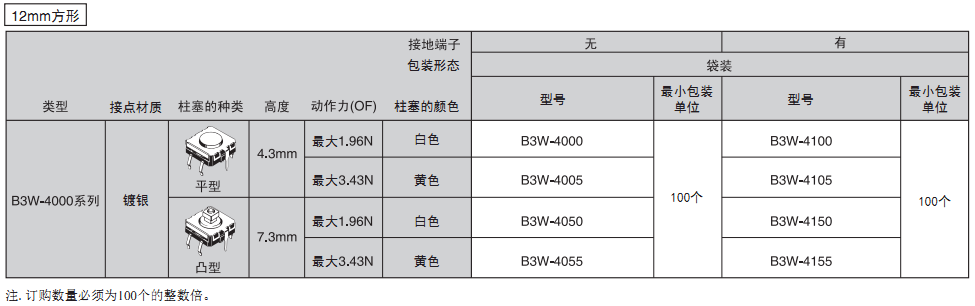 欧姆龙轻触开关,B3W-4000,欧姆龙轻触开关B3W
