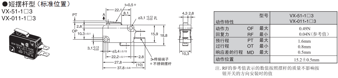 欧姆龙微动开关,VX-011-1A3,欧姆龙微动开关VX