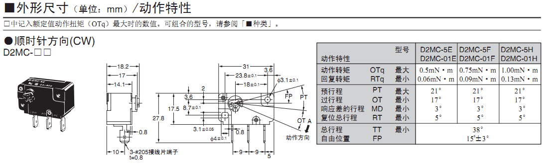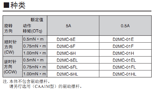 高可靠性、轻转矩 (0.5mN·m )的旋转动作基本开关