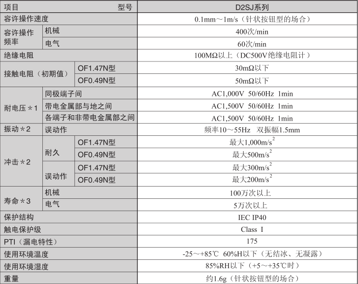 欧姆龙微动开关, D2SJ-5GL2,欧姆龙微动开关D2SJ