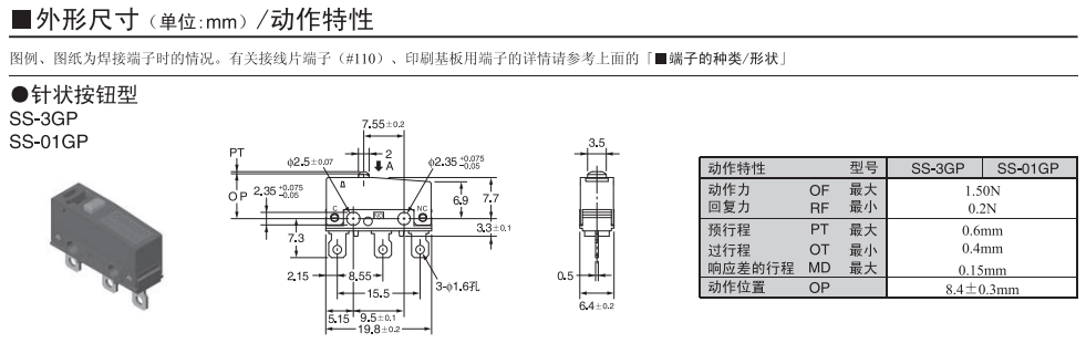 欧姆龙微动开关, SS-3GP,欧姆龙微动开关SS