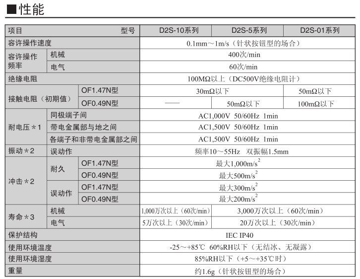 D2S 系列小型微动开关