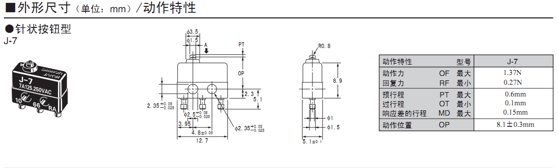 欧姆龙微动开关,J-7,欧姆龙微动开关J