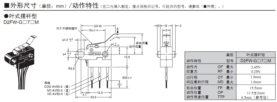 欧姆龙微动开关,D2FW-G271M,欧姆龙微动开关D2FW
