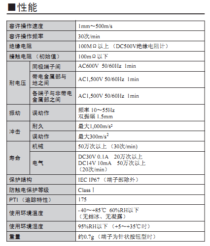 高可靠性和耐环境性兼备的长行程密封型开关