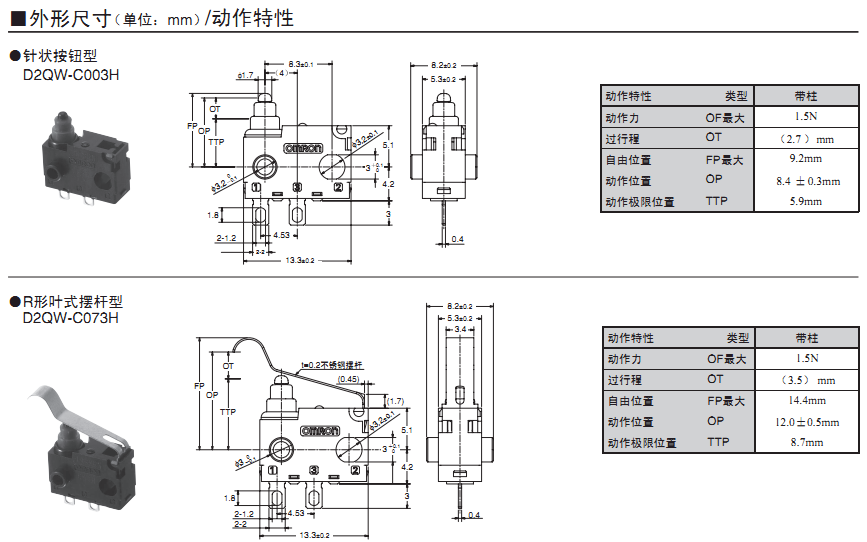 欧姆龙微动开关,D2QW-C003H,欧姆龙微动开关D2QW