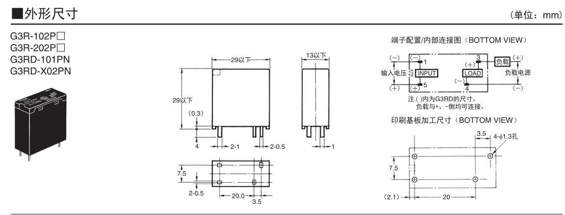 G3R 印刷基板用SSR。与G2R功率继电器同一形状