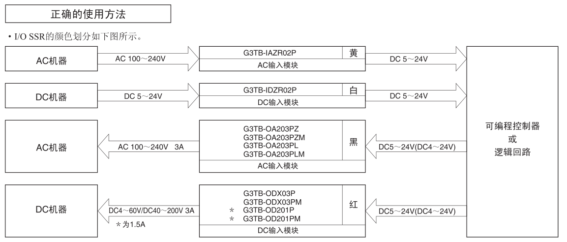 具有输入模块(AC、DC)、输出模块(AC、DC) 产品系列,各模块用颜色区分