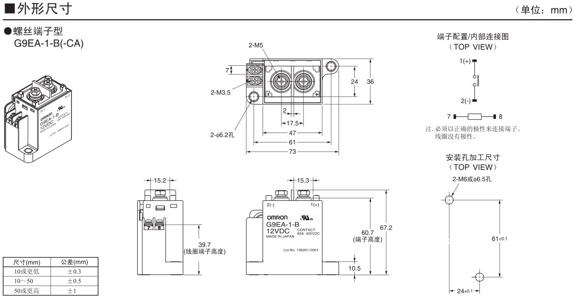G9EA-1 DC功率继电器(60A、100A型)