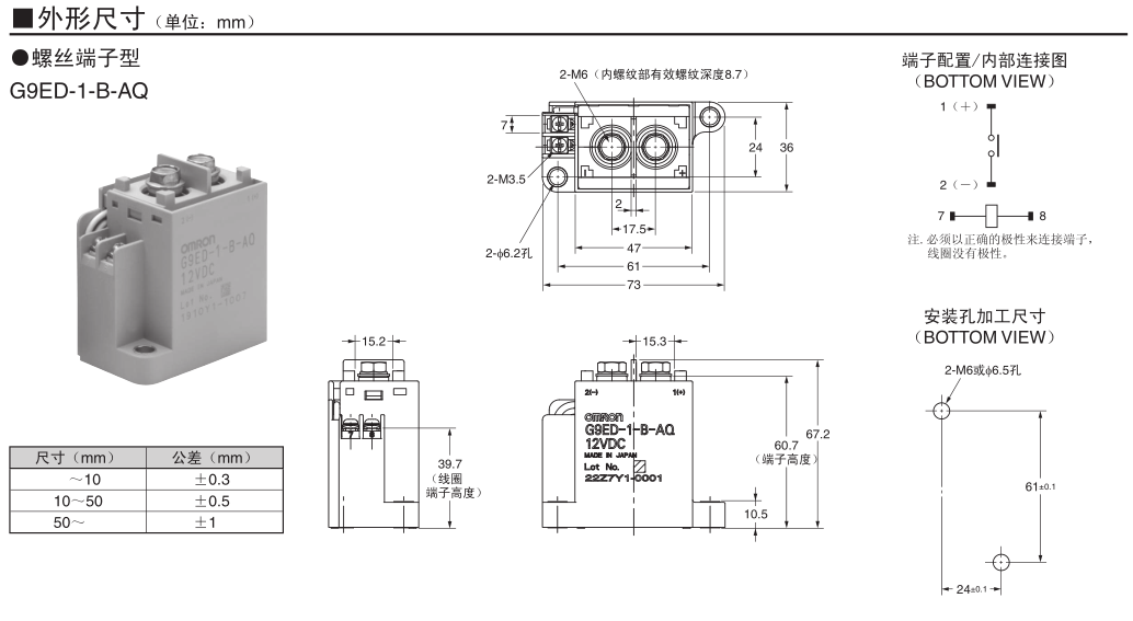 G9ED-1(-B)-AQ 直流功率继电器(150A型)