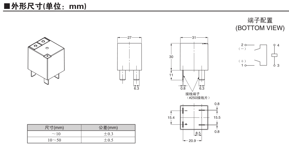 实现接点额定值为DC400V 15A的小型DC功率继电器