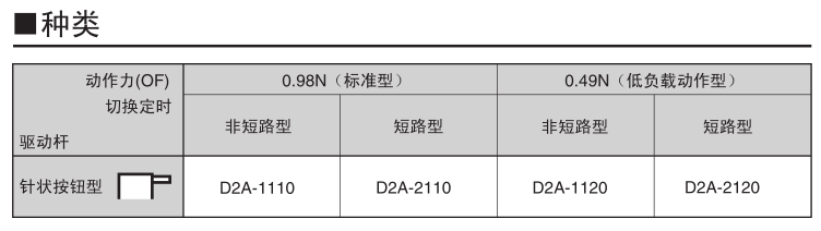 欧姆龙检测开关, D2A-1110,欧姆龙检测开关D2A