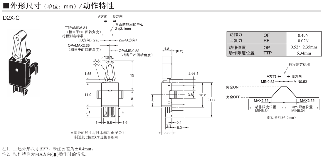 欧姆龙检测开关,D2X-C,欧姆龙检测开关D2X