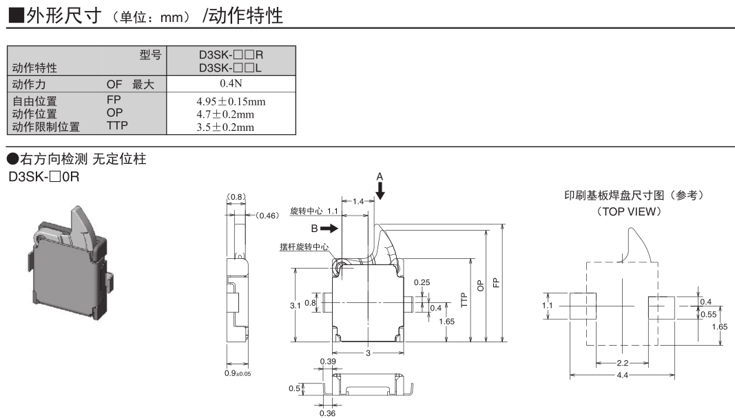 欧姆龙检测开关,D3SK-A0R,欧姆龙检测开关D3SK