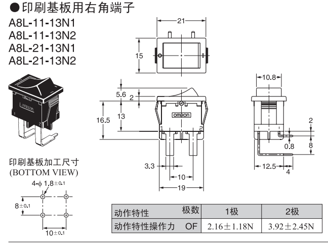 欧姆龙船型开关,A8L-21-13N1,欧姆龙船型开关A8L
