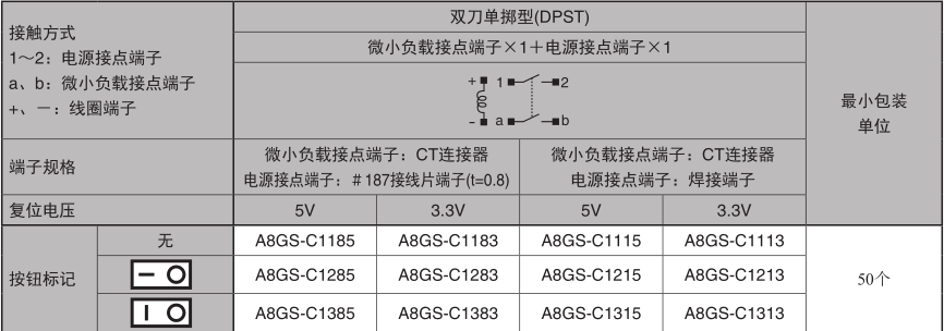 备有可同时ON/OFF微小负载领域、高负载领域的2极规格种类。
