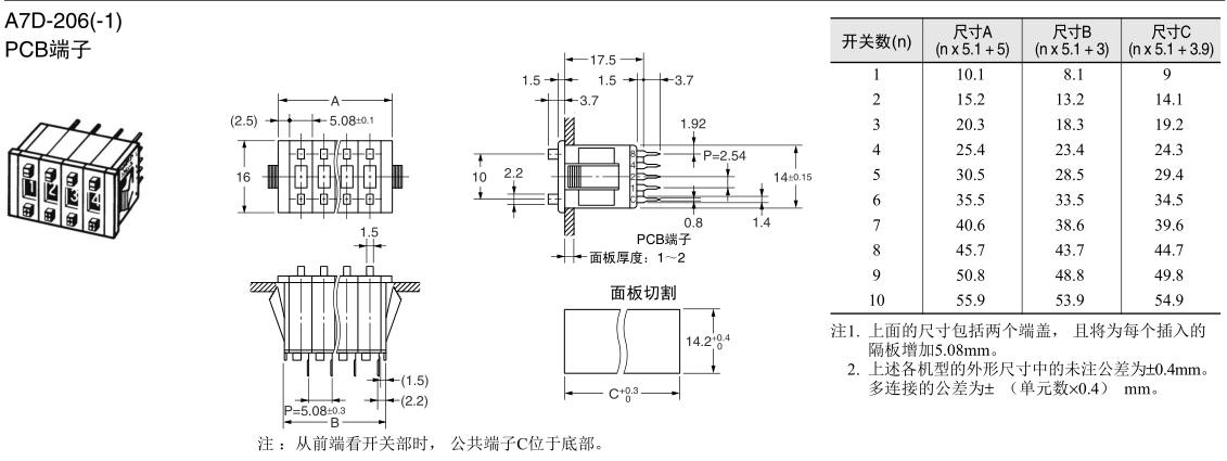欧姆龙拨码开关, A7D-206,欧姆龙拨码开关A7D