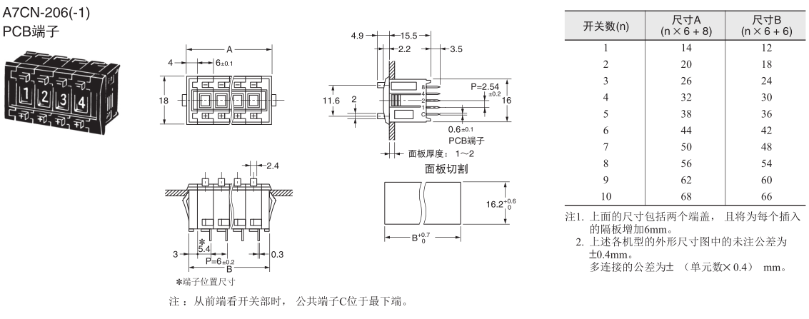 欧姆龙拨码开关, A7CN-206,欧姆龙拨码开关A7CN
