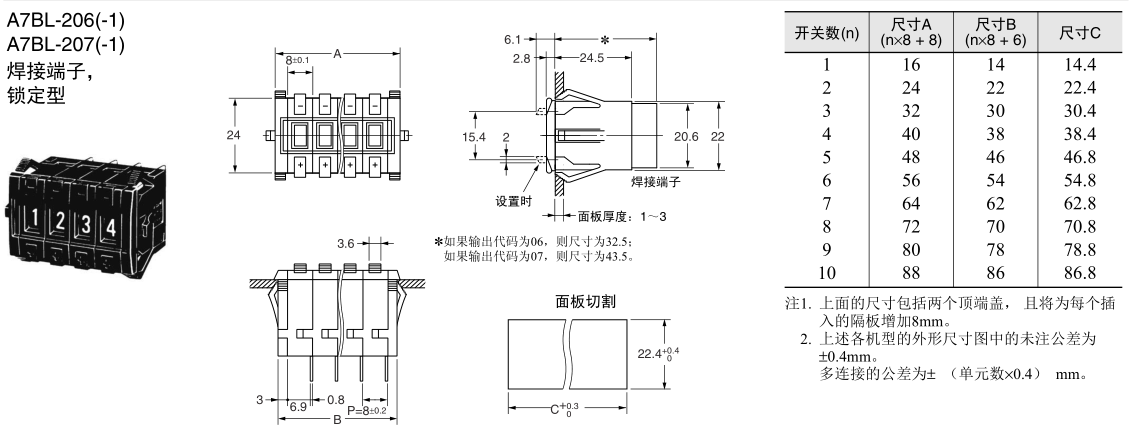 欧姆龙拨码开关,A7BL-206*2,欧姆龙拨码开关A7BL