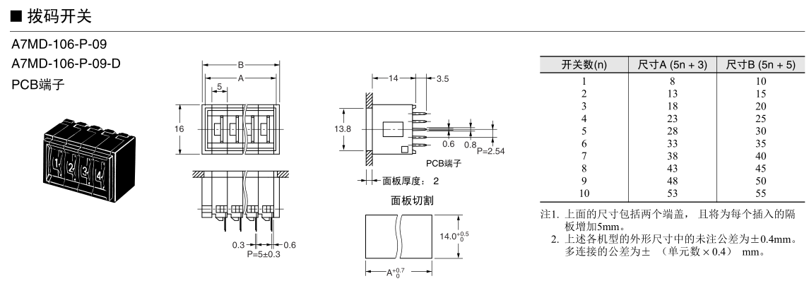 欧姆龙拨码开关,A7MD-106-P-09,欧姆龙拨码开关A7MD