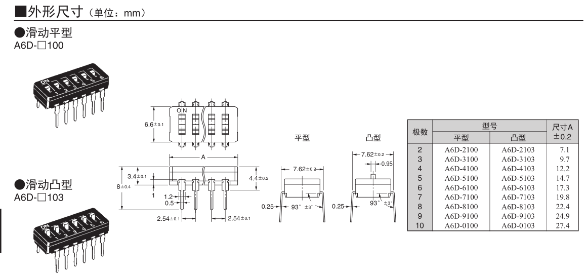 欧姆龙拨码开关, A6D-2100,欧姆龙拨码开关A6D