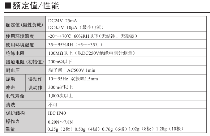 接点部分为镀金双接点,通过动作的自清洁构造,确保了高可靠性。
