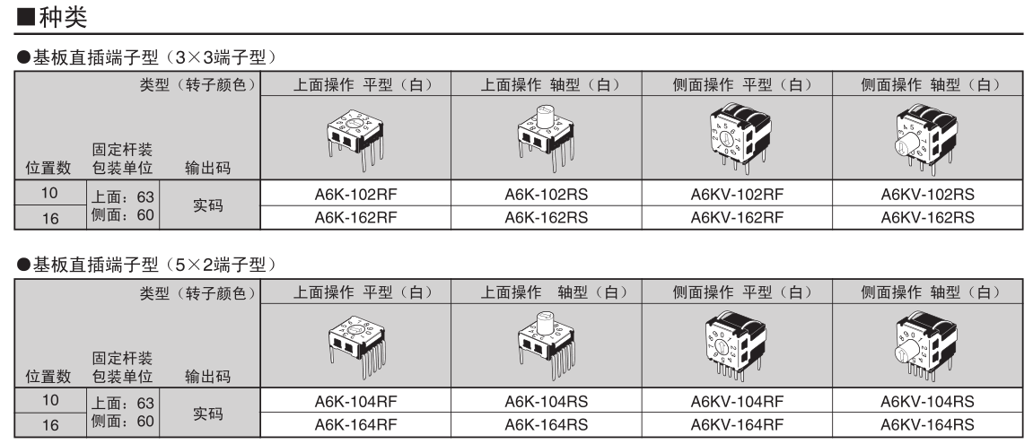 具有表面安装端子、直插型端子的两种型号对应。还提供侧面操作型产品