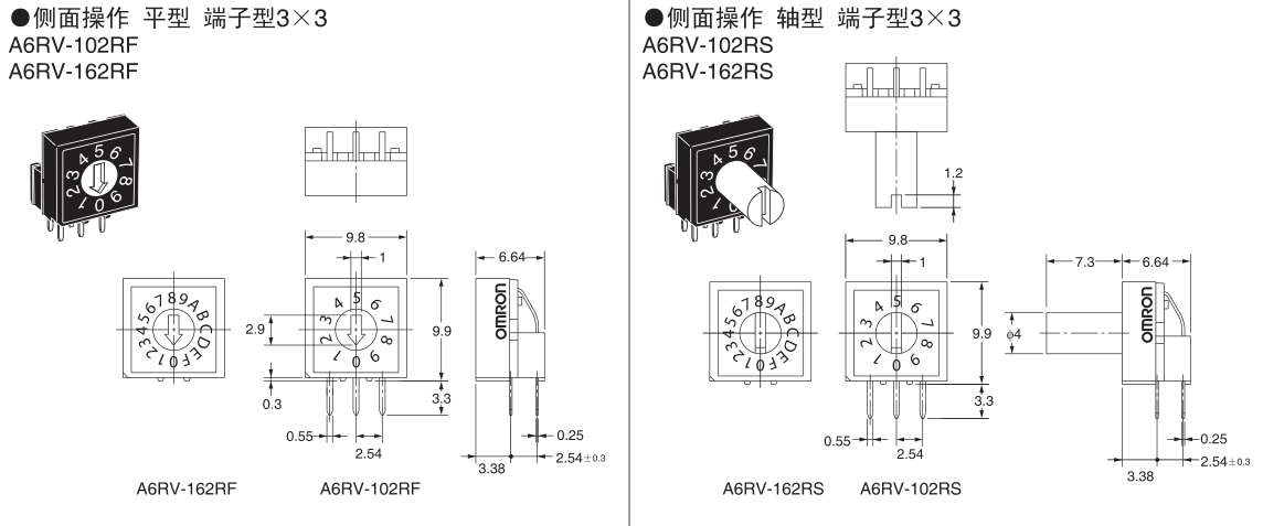 •  A6R-102RS旋转DIP开关